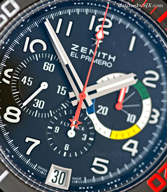 Le Zénith Rainbow Flyback, d'une couleur saisissante, était l'une des montres Zenith les plus mémorables des années 90, même si le reste de la ligne était visuellement oubliable. Cette année Zenith apporte les couleurs vives de l'arc-en-ciel comme le El Primero Stratos Flyback Rainbow Boutique Edition, qui se démarquent encore plus contre le cas tout noir.